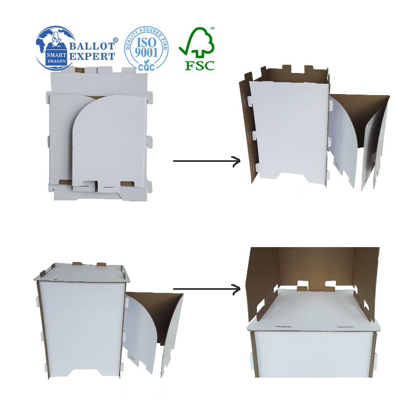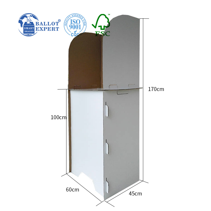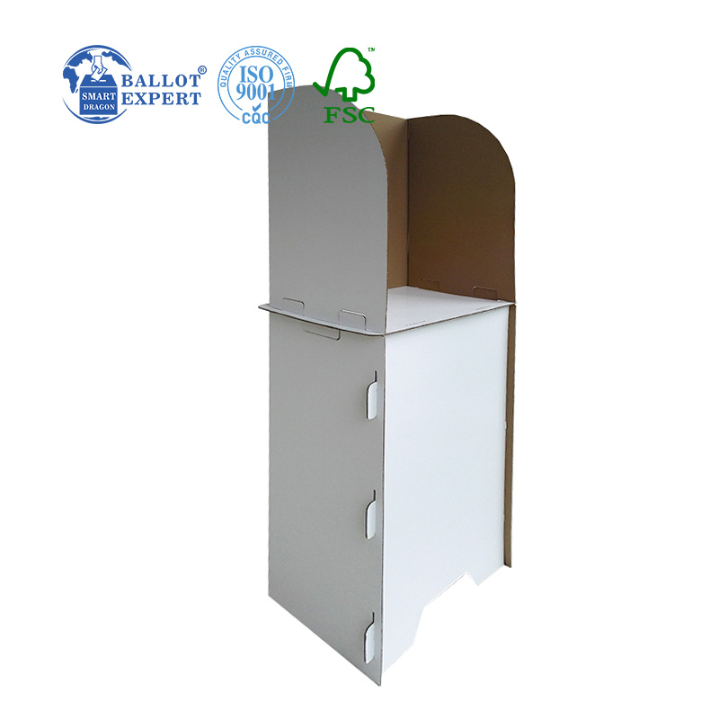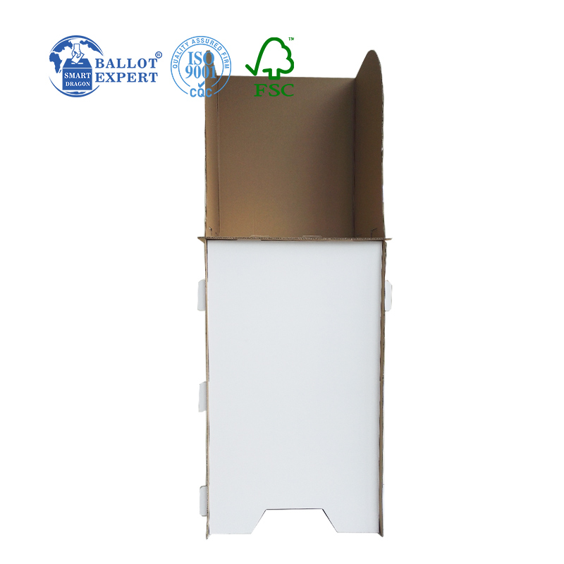 The cardboard voting booth adopts high-quality three-sided cardboard, which is reasonably designed, durable, affordable, recyclable and degradable, and suitable for presidential, state elections, parliamentary elections, local elections, etc. If you need corrugated paper polling booth construction, please call +86 13928843163 or Email:election_2@ballotexpert.com